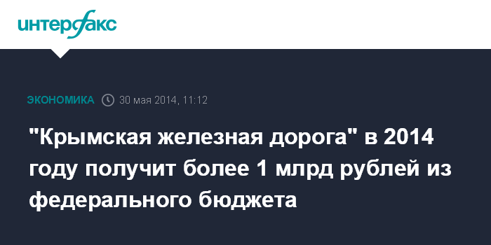 "Крымская железная дорога" в 2014 году получит более 1 млрд рублей из федерального бюджета