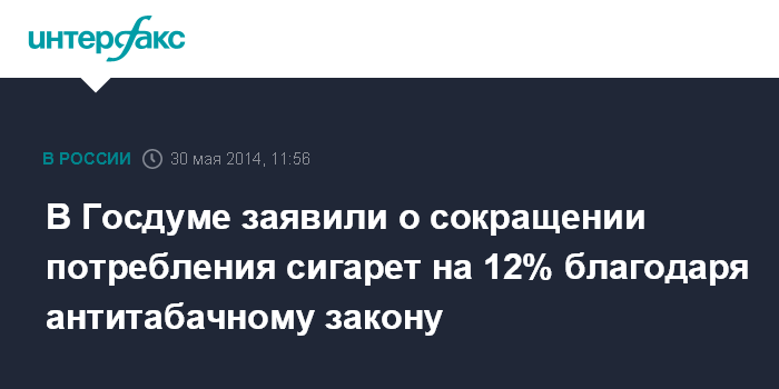 Москва. 30 мая. INTERFAX.RU - Новый антитабачный закон уже привел к значительному сокращению потребления сигарет, сообщил первый зампред комитета Госдумы по охране здоровья Николай Герасименко.