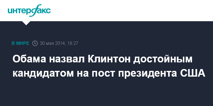 Москва. 30 мая. INTERFAX.RU - Лидер США Барак Обама выразил уверенность в том, что бывшая госсекретарь Хиллари Клинтон может стать эффективным президентом, если решит участвовать в президентской гонке в 2016 году.