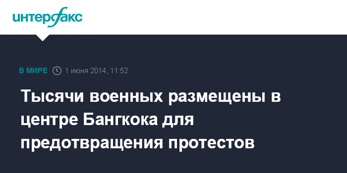 Москва. 1 июня. INTERFAX.RU - Военные власти Таиланда направили тысячи военных и полицейских для обеспечения порядка на центральных улицах столицы, сообщает сингапурская газета "Стрейтс таймс".