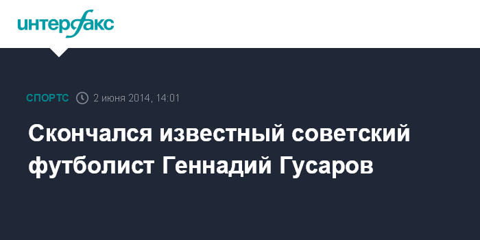 Москва. 2 июня. INTERFAX.RU - Известный советский футболист, заслуженный мастер спорта Геннадий Гусаров скончался в понедельник в Москве на 78-м году жизни, сообщает пресс-служба ФК "Торпедо".
