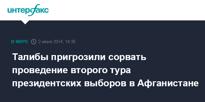 Москва. 2 июня. INTERFAX.RU - Мятежники из движения "Талибан" призывают жителей Афганистана отказаться от голосования в ходе второго тура выборов нового президента страны и грозят атаками на избирательные участки, сообщает в понедельник сайт ливанской газеты Daily Star.