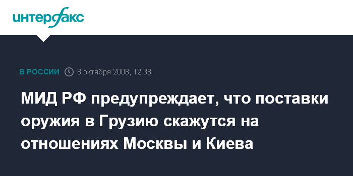 МИД РФ предупреждает, что поставки оружия в Грузию скажутся на отношениях Москвы и Киева