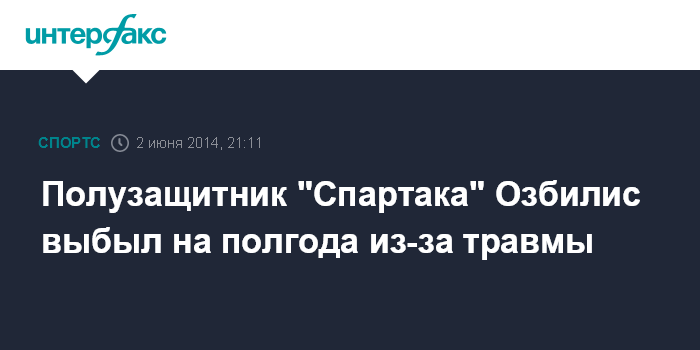 Москва. 2 июня. INTERFAX.RU - Медики в клинике в Амстердаме диагностировали разрыв передней крестообразной связки правой ноги полузащитнику "Спартака" и сборной Армении по футболу Арасу Озбилису.
