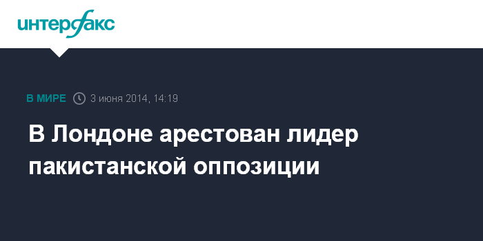 Москва. 3 июня. INTERFAX.RU - Руководитель "Объединенного национального движения" Пакистана Алтаф Хусейн арестован в Лондоне по обвинению в отмывании денег, передает во вторник BBC.