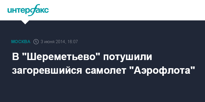 Москва. 3 июня. INTERFAX.RU - В аэропорту "Шереметьево" потушили принадлежащий "Аэрофлоту" самолет Ил-96, сообщил "Интерфаксу" представитель авиаперевозчика. Загоревшееся воздушное судно было выведено из эксплуатации в марте 2014 года.