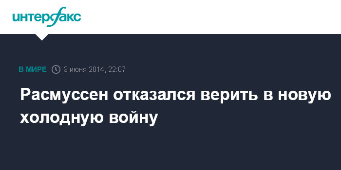 Расмуссен отметил, что не верит в возможность возникновения новой холодной войны, но указал на "слишком активные действия России" в период кризиса на Украине, что, по его мнению, служит напоминанием о прошлом.