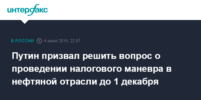 Путин призвал решить вопрос о проведении налогового маневра в нефтяной отрасли до 1 декабря