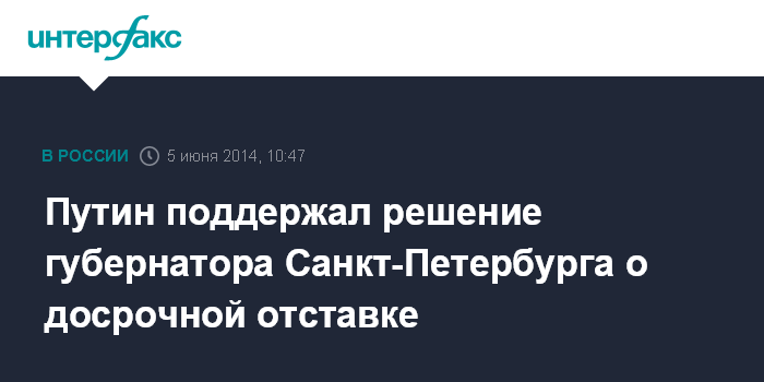 Путин поддержал решение губернатора Санкт-Петербурга о досрочной отставке
