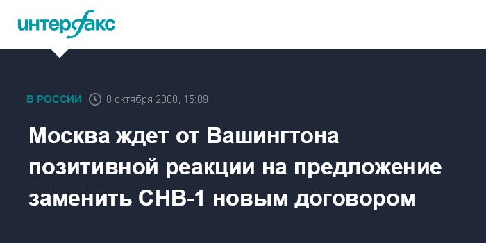 Москва ждет от Вашингтона позитивной реакции на предложение заменить СНВ-1 новым договором
