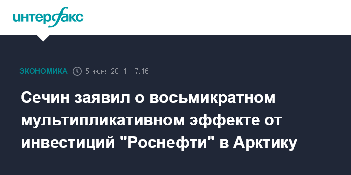 По данным Российской академии наук, мультипликативный эффект от реализации составит 7,7 раза, таким образом, освоение Арктики может стать одним из локомотивов экономического роста страны, заявил Сечин.