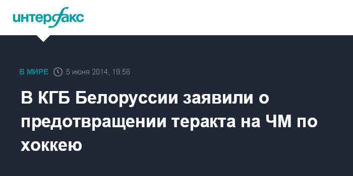 Москва. 5 июня. INTERFAX.RU - Белорусские спецслужбы совместно со своими зарубежными коллегами предотвратили теракт, готовившийся во время чемпионата мира по хоккею в белорусской столице, сообщил журналистам в четверг в Минске председатель КГБ Белоруссии Валерий Вакульчик.