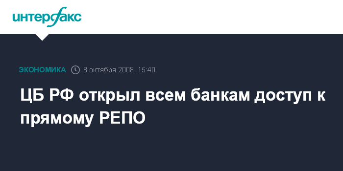 ЦБ РФ открыл всем банкам доступ к прямому РЕПО