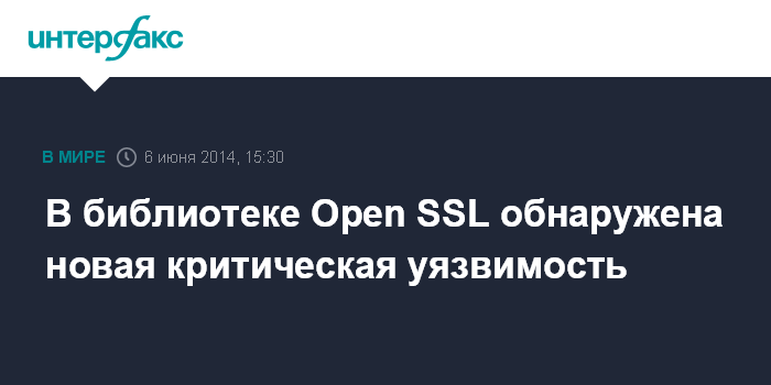 Москва. 6 июня. INTERFAX.RU - В библиотеке шифрования Open SSL, которая используется почти в 70% сайтов, была найдена уже вторая критическая уязвимость - всего через месяц после обнаружения уязвимости Heartbleed, пишет газета Financial Times.