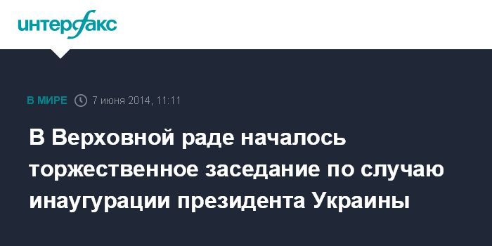Москва. 7 июня. INTERFAX.RU - В Верховной Раде Украины началась торжественная церемония инаугурации новоизбранного президента Украины Петра Порошенко.