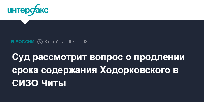 Суд рассмотрит вопрос о продлении срока содержания Ходорковского в СИЗО Читы