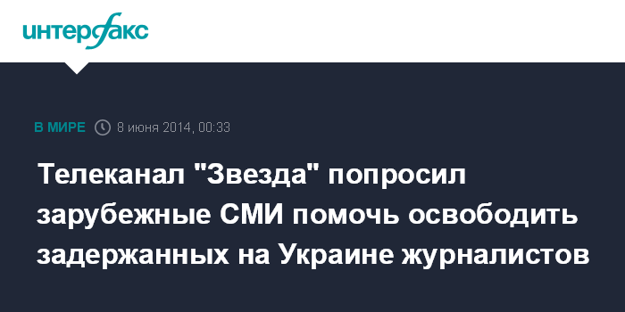Телеканал "Звезда" попросил зарубежные СМИ помочь освободить задержанных на Украине журналистов