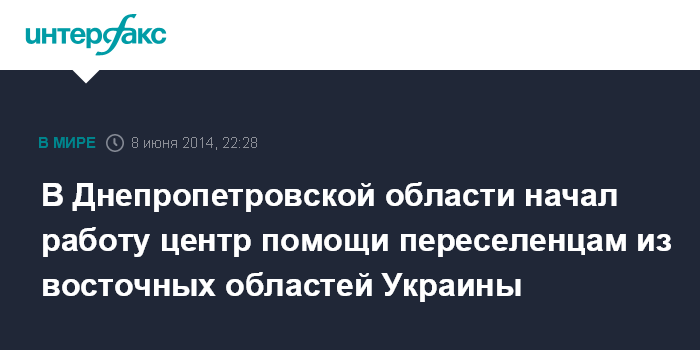 Москва. 8 июня. INTERFAX.RU - Днепропетровская облгосадминистрация создала Центр помощи переселенцам из Донецкой, Луганской областей.