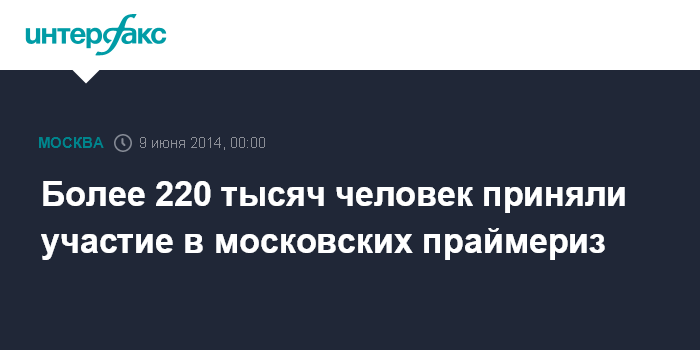 Москва. 9 июня. INTERFAX.RU - На праймериз в Мосгордуму проголосовали более 220 тысяч москвичей, заявил председатель счетной комиссии Михаил Барщевский.