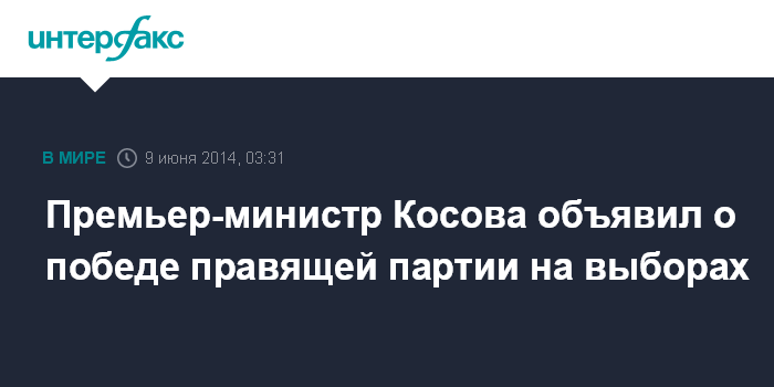 Москва. 9 июня. INTERFAX.RU - Премьер-министр Косова Хашим Тачи объявил о победе правящей Демократической партии Косова, несмотря на низкую явку избирателей, сообщила BBC.