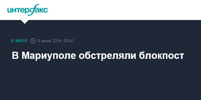 Москва. 9 июня. INTERFAX.RU - В Мариуполе обстрелян блокпост в микрорайоне Восточный, сообщает телеканал "Звезда" со ссылкой на пресс-службу самопровозглашенной Донецкой народной республики. Также загорелось заброшенное здание рядом с аэропортом.