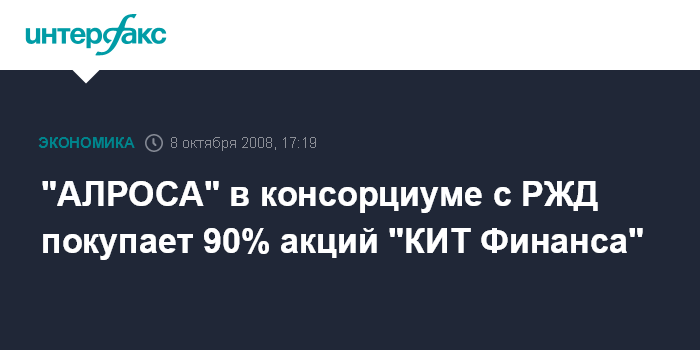 "АЛРОСА" в консорциуме с РЖД покупает 90% акций "КИТ Финанса"