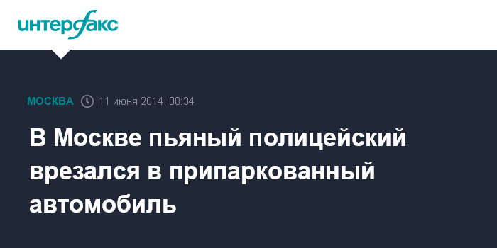Москва. 11 июня. INTERFAX.RU - Сотрудник столичной полиции в нетрезвом виде попал в ДТП на западе столицы, сообщили "Интерфаксу" в пресс-службе ГУ МВД России по Москве.