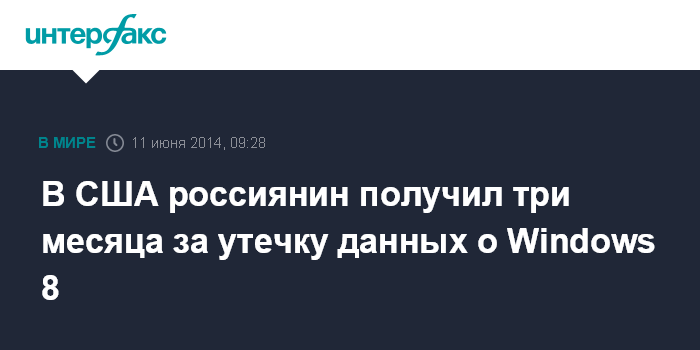 В США россиянин получил три месяца за утечку данных о Windows 8