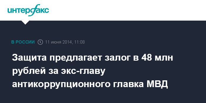 Москва. 11 июня. INTERFAX.RU - Адвокаты экс-начальника Главного управления экономической безопасности и противодействия коррупции (ГУЭБиПК) МВД генерал-лейтенанта Дениса Сугробова попросили суд отпустить подзащитного под залог в 48 млн рублей. Соответствующее заявления адвокаты сделали в среду в Мосгорсуде, где рассматривается апелляционная жалоба на арест Сугробова.