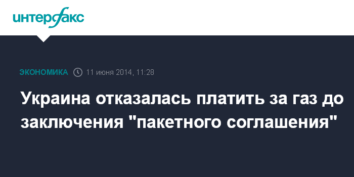 Украина отказалась платить за газ до заключения "пакетного соглашения"
