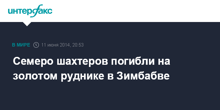 Москва. 11 июня. INTERFAX.RU - Семь горняков погибли на золотодобывающем руднике в городе Кадома в Зимбабве, сообщают в среду западные СМИ.