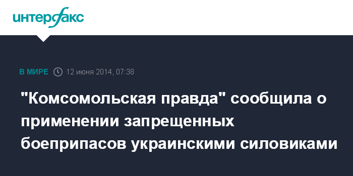 Москва. 12 июня. INTERFAX.RU - Украинские силовики применили при обстреле города Славянска самопровозглашенной Донецкой народной республики в ночь на четверг некие горящие снаряды, сообщает газета "Комсомольская правда".
