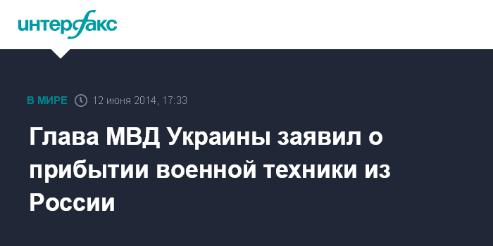 Москва. 12 июня. INTERFAX.RU - Министр внутренних дел Украины Арсен Аваков заявил, ссылаясь на разведданные, что через восточную границу со стороны России в страну проникает военная техника.