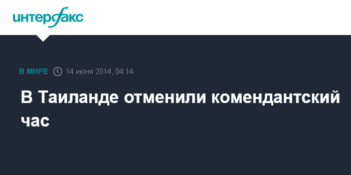 Москва. 14 июня. INTERFAX.RU - Военное руководство Таиланда, взявшее на себя руководство страной, отменило ночной комендантский час, заявил генерал Прают Чан-Оча в своем еженедельном обращении в пятницу. Об этом сообщает CNN.