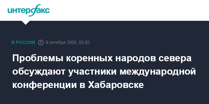 Как сообщили агентству "Интерфакс-Дальний Восток" в пресс-центре правительства Хабаровского края в четверг, в ходе конференции будут обсуждаться ряд вопросов, в том числе экологическая ситуация в регионе, и взаимодействие с международными организациями по решению проблем коренных малочисленных народов Севера.