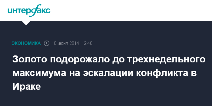 "Есть спрос на активы "тихой гавани" в связи с возросшей напряженностью в Ираке, - отмечает сырьевой аналитик Fat prophets в Сиднее Дэвид Леннокс. - Такой поддержки и ждал рынок золота".