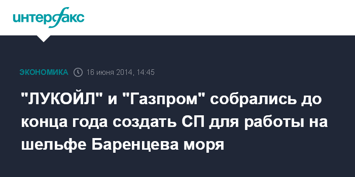 Москва. 16 июня. INTERFAX.RU - "ЛУКОЙЛ" и "Газпром" до конца года планируют создать совместное предприятие (СП) для работы на шельфе Баренцева моря, сообщил журналистам президент "ЛУКОЙЛа" Вагит Алекперов в кулуарах XXI Мирового нефтяного конгресса.