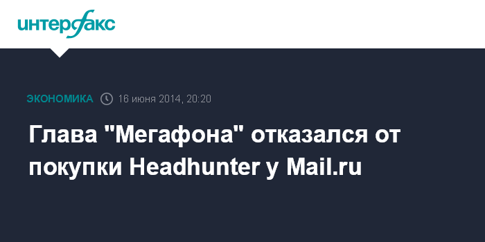 Глава "Мегафона" отказался от покупки Headhunter у Mail.ru