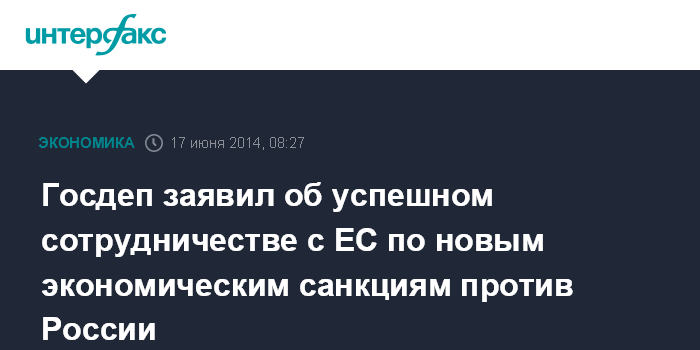 Госдеп заявил об успешном сотрудничестве с ЕС по новым экономическим санкциям против России
