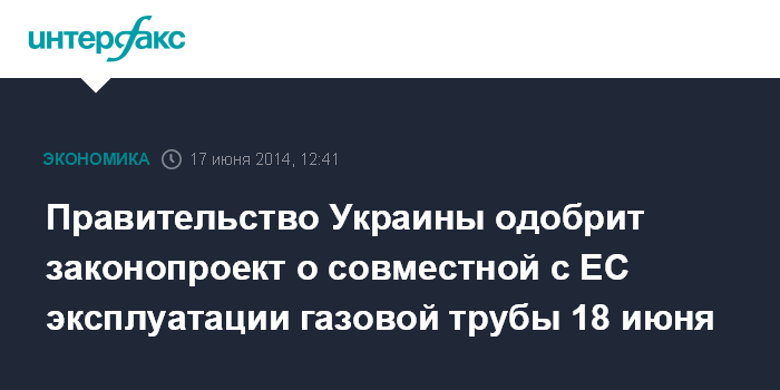 Правительство Украины одобрит законопроект о совместной с ЕС эксплуатации газовой трубы 18 июня