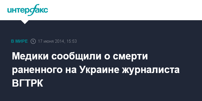 Медики сообщили о смерти раненного на Украине журналиста ВГТРК