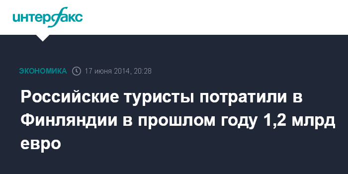 Москва. 17 июня. INTERFAX.RU - Туристы из России потратили в Финляндии в 2013 году 1,2 млрд евро, сообщил журналистам исполнительный директор Федерации коммерции Суоми Юхани Пеккала.