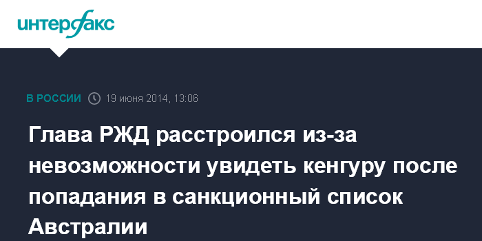 Глава РЖД расстроился из-за невозможности увидеть кенгуру после попадания в санкционный список Австралии