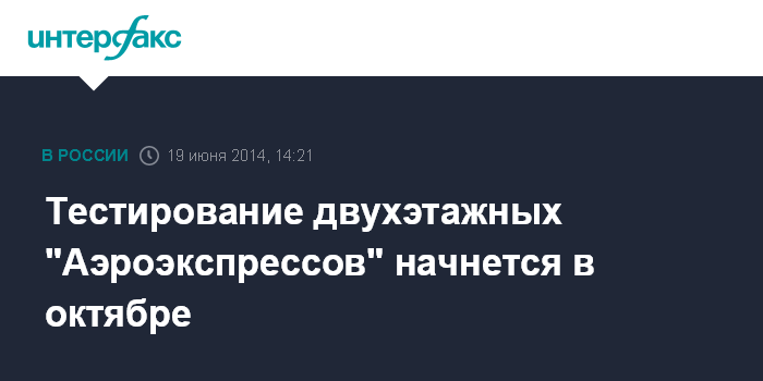Москва. 19 июня. INTERFAX.RU - Поставка в Россию двухэтажных "Аэроэкспрессов" начнется в октябре 2014 года, сообщили "Интерфаксу" в пресс-службе департамента транспорта и развития дорожно-транспортной инфраструктуры Москвы в четверг.