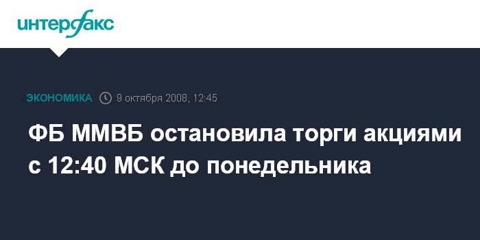ФБ ММВБ остановила торги акциями с 12:40 МСК до понедельника