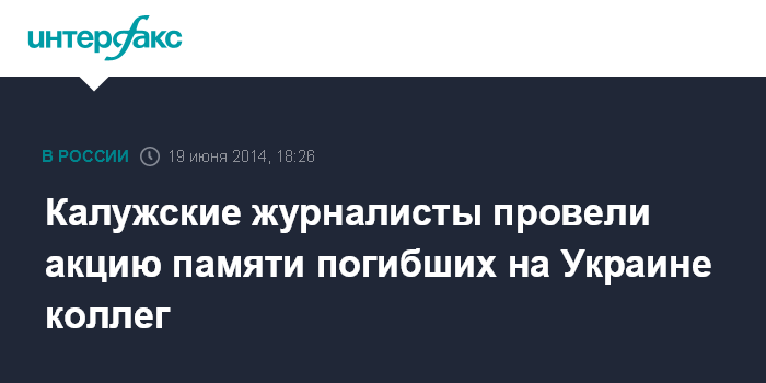 Москва. 19 июня. INTERFAX.RU - Сотрудники СМИ Калуги в четверг почтили память сотрудников ВГТРК, погибших на Украине во вторник, 17 июня, передает корреспондент "Интерфакс".