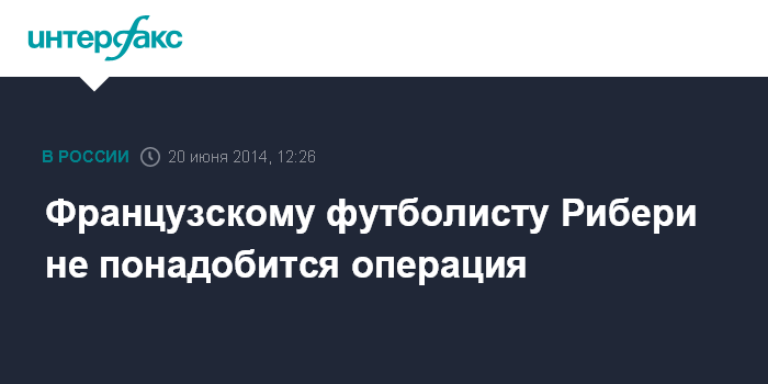 Москва. 20 июня. INTERFAX.RU - Полузащитник футбольного клуба "Бавария" Франк Рибери будет восстанавливаться от травмы спины без хирургического вмешательства.