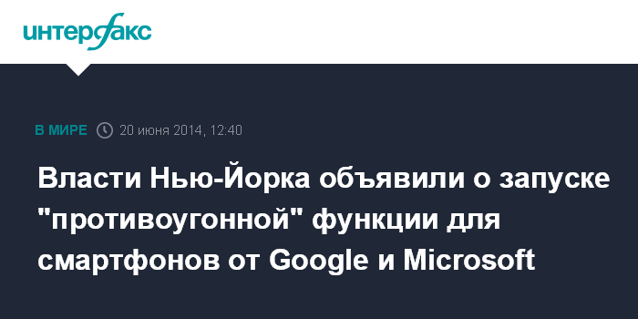 Власти Нью-Йорка объявили о запуске "противоугонной" функции для смартфонов от Google и Microsoft