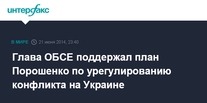 Глава ОБСЕ поддержал план Порошенко по урегулированию конфликта на Украине