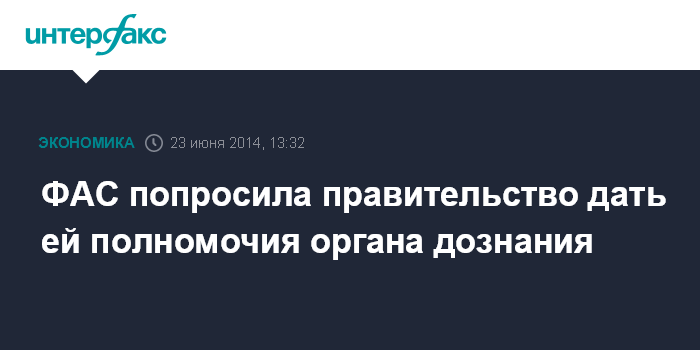 Москва. 23 июня. INTERFAX.RU - Глава Федеральной антимонопольной службы Игорь Артемьев обратился с письмом к премьер-министру Дмитрию Медведеву, в котором попросил наделить ведомство функцией органа дознания по уголовным делам о совершении преступлений по антикартельной статье (ст. 178 УК РФ). Об этом сообщил "Интерфаксу" источник в одном из ведомств финансово-экономического блока.